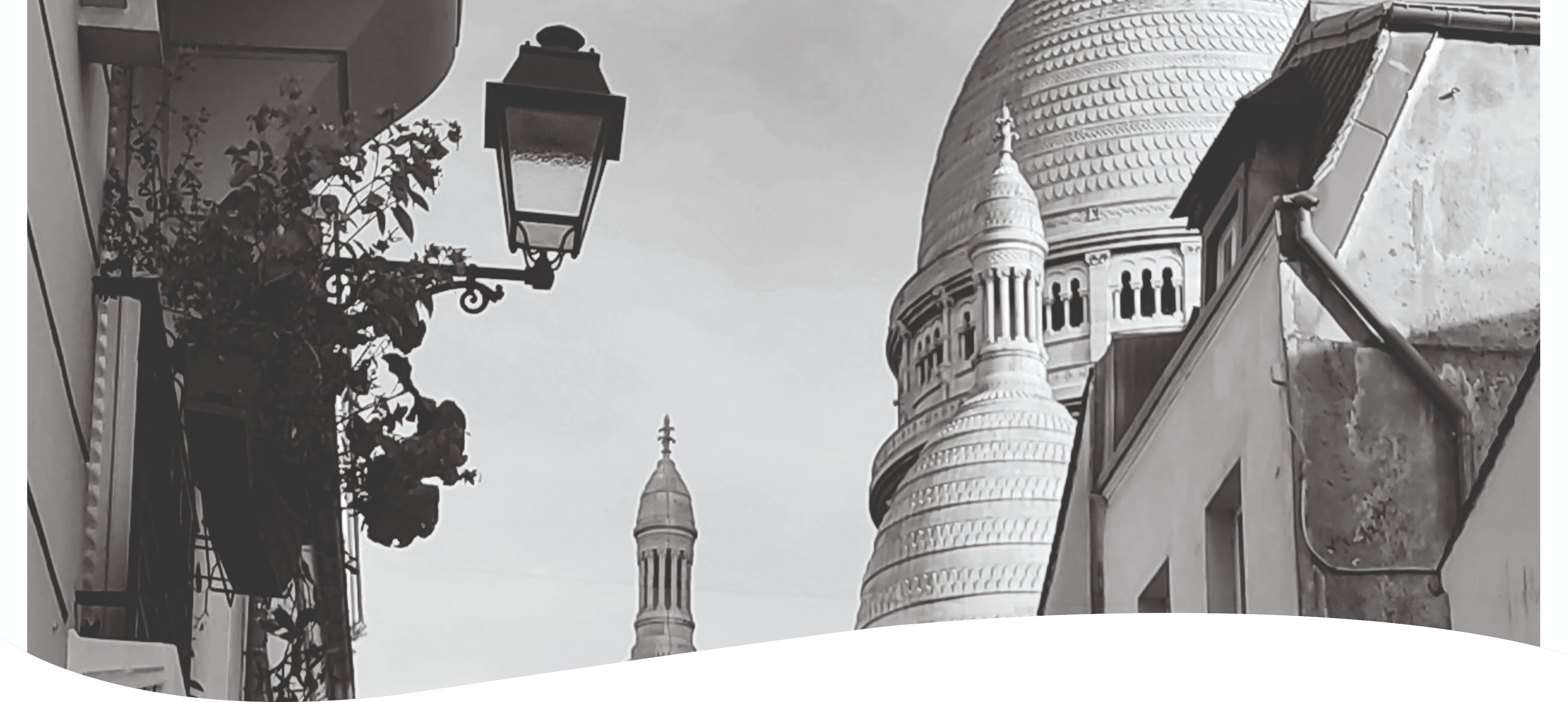 I chose to take a photograph from within the city, using a low-angle shot to highlight the majesty of the Sacré-Cœur and its surrounding environment. I selected the tagline: “A journey between sky and earth” to emphasize the grandeur of the monuments found in Montmartre.