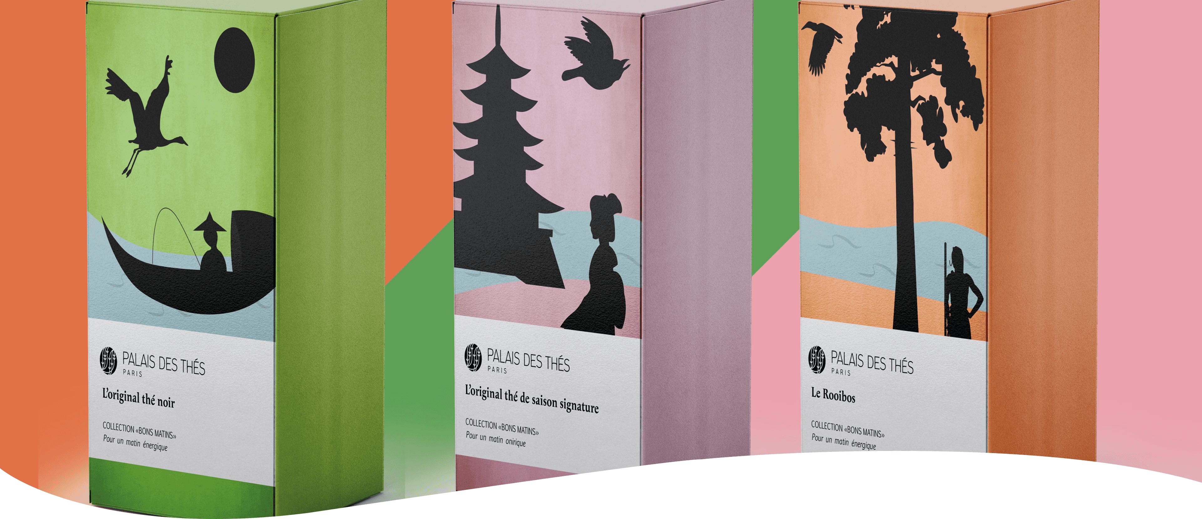 Le Palais des Thés had a special request: to design three tea packages that are connected—either through a shared graphic style or a common decorative element.